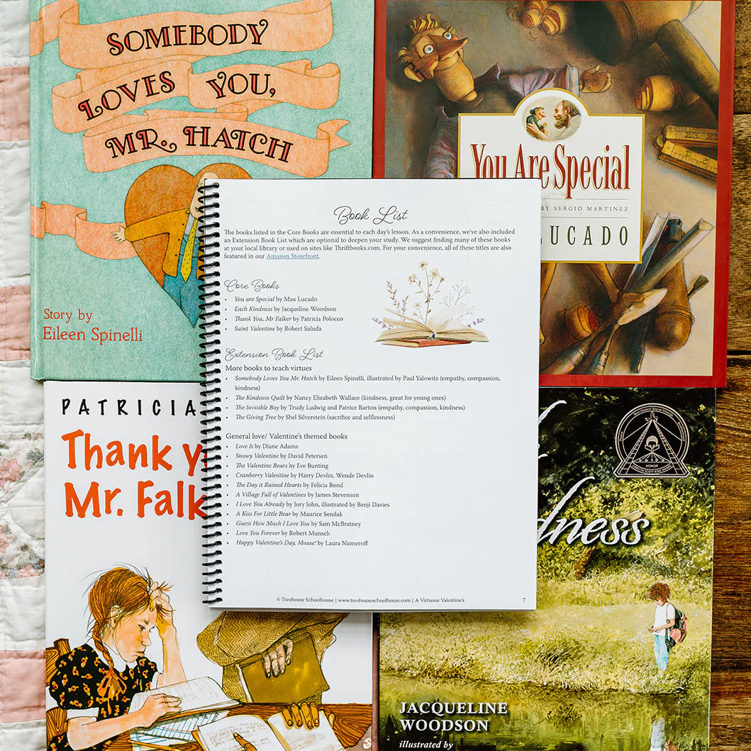 A Virtuous Valentine’s is a Charlotte Mason-inspired curriculum designed with your whole family in mind. It’s an invitation to study the life-changing love of God in a hands-on way. Through Scripture readings, beauty subjects, picture books, hands-on activities, and a look into the history of Valentine’s Day, this study provides an invitation to delve into the profound depth of God’s love and how it shapes our relationships. We’ll explore how God’s love is unconditional, how love is expressed through acts of kindness and encouragement, how compassion and empathy can change hearts and lives, and how true love is demonstrated through selflessness and sacrifice. Your study will conclude by celebrating and creating memories together with a Valentine’s Day Tea Party.